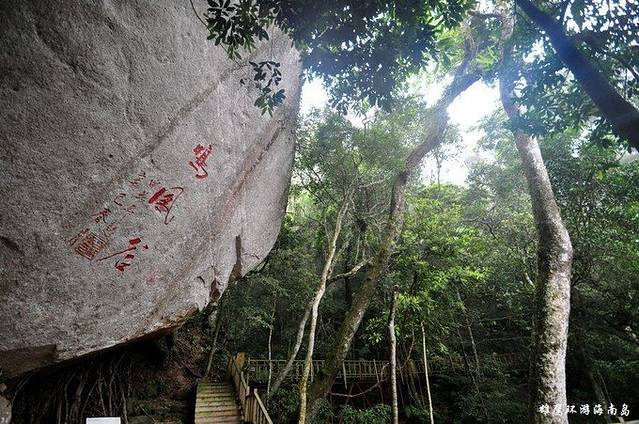 仕阶村摩崖石刻群,据说琼中上安乡仕阶村是五指山的最佳观赏点和攀登点。这里有大量的清代摩崖石刻,“手辟南荒”、“一手撑天”、“百越锁钥”、“巨手擎天”等摩崖石刻群。字大如斗,笔法浑厚,气势磅礴。豪情浓时石做纸,雅趣兴起刀为笔,清代名将冯子材西望巍然耸立的五指山,在上安仕阶村大石旁踌躇满志挥毫而就“手辟南荒”四个遒劲工整的大字。“辟”字表现无比的力度,“手“则体现了一种艰难,一句四言,以此折射了他亲手开创黎区的壮举和豪迈。琼中县上安仕阶村的清代汉字摩崖石刻群记载着清朝廷对黎区的开发。