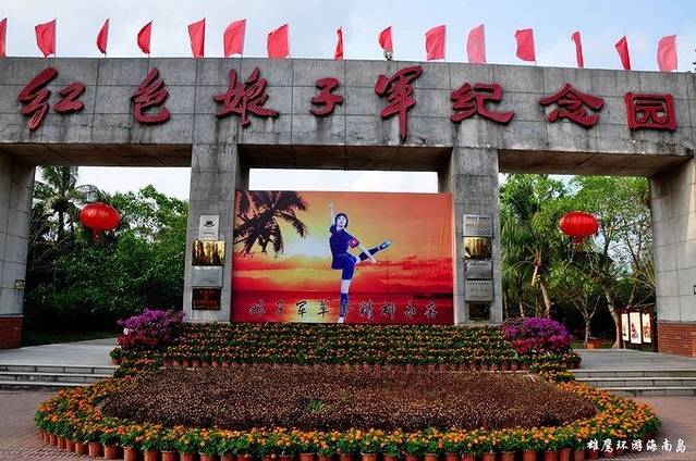 红色娘子军纪念园”是为纪念 “中国工农红军第二独立师女子军特务连”而建造的文化旅游区。红色娘子军纪念园位于琼海市官塘,从白石岭景区回琼海正好路过这里。园区有热带风情园林、大型雕塑、浮雕为一体的文化旅游纪念园。园内设有和平广场、纪念广场、歌舞广场、椰林寨、红色娘子军陈列馆等景点,再现了红色娘子军当年生活、战斗的光辉历史。红色娘子军纪念园与万泉河、博鳌成为琼海旅游的三大亮点。