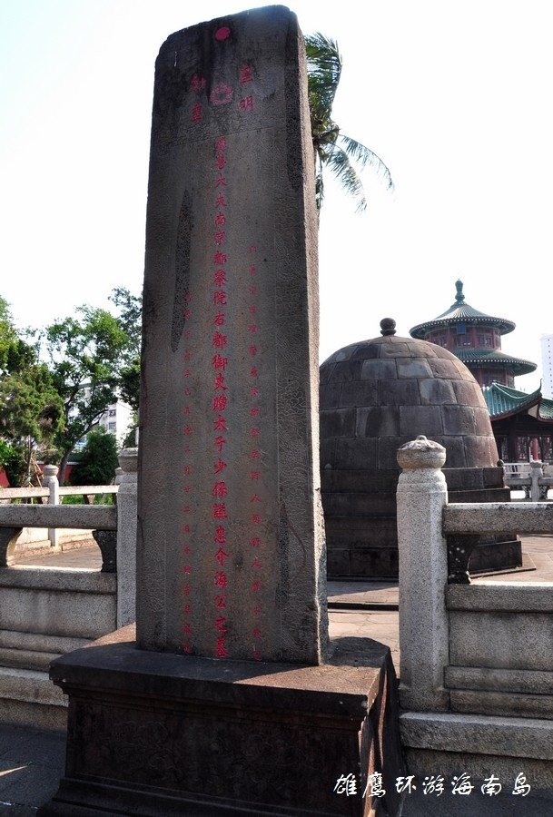海瑞墓是为了纪念历史上有名的清官海瑞而修建的,主要由石牌坊、海瑞墓、海瑞塑像、海瑞陈列馆及相关建筑构成,又被叫做海瑞纪念馆或海瑞公园。走进景区大门,先看到的是石牌坊,穿过牌坊便是用花岗石条铺砌而成的墓道,长约一百多米,与一般墓道相同,两侧对称排列着石羊、石马、石狮、石龟和石人,应该是宋朝的文物。而墓道的尽头就是海瑞陵墓,墓前的墓碑是真品,距近已有四百多年历史,是国家珍贵级文物。海瑞墓后的部分是后期扩建的,有海瑞塑像、扬廉轩、清风阁、假山等建筑。