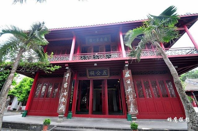 五公祠是为纪念唐、宋朝时期贬到海南的五位著名历史人物:唐朝名相李德裕、宋朝名相李纲、李光、赵鼎、名臣胡诠而建的。五公祠为一组古建筑群的统称,它由观稼堂、学圃堂、东斋组成,并和苏公祠 、两伏波祠及其拜亭、洞酌亭、粟泉亭、洗心轩、游仙洞先进连成一片,始建于明万历年间。