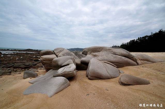 棋子湾位于海南西海岸的昌江县西部,在昌化镇北3公里处,距昌江县城石碌镇55公里。此湾东倚昌化岭,西连大海,东西长约20公里,呈S状,石多沙白浪静。该湾水清见底,沙细质软,洁白如银。海岸奇峰林立,怪石磷峋多姿,林木苍翠,山花烂漫,绿草如茵,银色的沙滩与湛蓝大海连成一片。 有大角、中角、小角三个海湾延绵整个棋子湾。