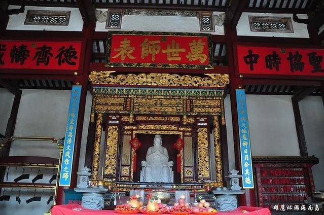 从月亮湾出来后就前往文昌市内的文昌孔庙,文昌孔庙位于文昌县城文东路。史建于北宋庆历年间,明洪武八年迁于现址,它是海南省保存得最完整的古建筑群,被誉为“海南第一庙”。始建于北宋庆历年间,与范仲淹写《岳阳楼记》同时代。是我国惟一一座不朝南开大门的孔庙。据说是因为老文昌人曾经立誓:若文昌未出状元,孔庙就不开大门,孔庙就至今没有大门,只有一左一右两个侧门。