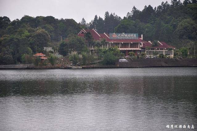 地处山上海拔808米的天池旅游区。四周有18座奇峰环抱的天池,碧波荡漾,宛若仙境,十八座千米山峰如十八罗汉环抱着碧波荡漾的天池,形成山中有湖,湖中有岛的人间仙境。40公顷湖面,群山怀抱,景色秀丽,湖光山色倒映。我运气不佳,来到这里已经快天黑了,周围云雾缭绕,只能想象一下天池的美丽了。