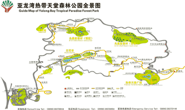 鸟巢度假村主要以围凤岭、飞龙岭、龙头岭、双龙岭、青梅岭和亚龙山等组成,园内热带植物动物多余种。亚龙湾鸟巢度假村以森林生态环境为主题,分三大区域,一是生态保护区;二是生态观光区;三是休闲度假区域。着力打造探险性、娱乐性、休闲度假式的森林公园,是顶级热带滨海度假兼观光型森林公园。这里所有客房均以鸟的名字来命名。