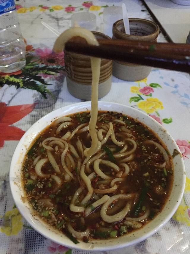 传说中的一根面,味道也好,老板娘脾气暴烈!俺就多弄点她的辣椒给我吼得!