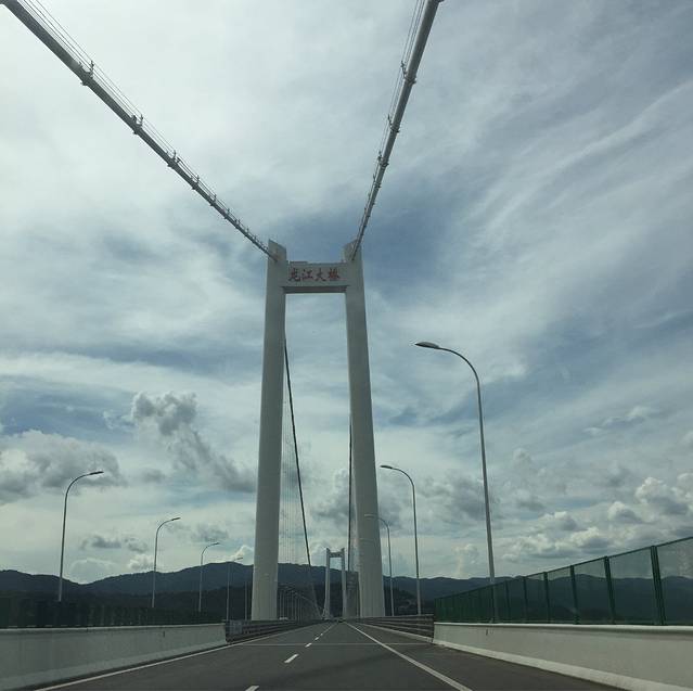 特别提一下,龙江大桥,他是云南首座特大跨径钢箱加劲梁悬索桥,因为保腾高速公路经过高黎贡山断裂带,地震烈度高,沿途多为火山地貌建设难度大。大家路过时停车到观景台看看。