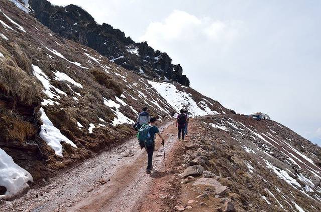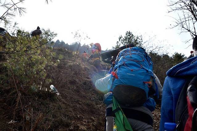 继续沿着小路艰难跋涉,很多小路挺危险的,必须多加小心。很久没有运动了,在爬山的过程中,有几次腿部有抽筋的迹象,也不知道是不是因为海拔高开始缺氧了,因为也有一哥们也说自己的腿要抽筋了,只能放慢脚步,到后来真的是拖着脚步走了,这时候你就发现早上多吃点东西的作用了