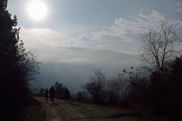 太阳出来了,气温逐渐升高,没走多远就热得不行,于是脱去外套。但还是会有一点凉