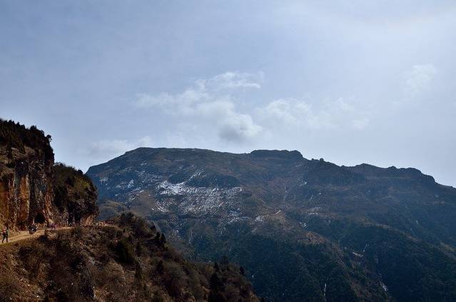 过了云海人家,转一个弯就看到了牛背山了,山上还有上一周的积雪。山头看起来不高,但最终爬到山顶还需要2-3个小时的路程呢