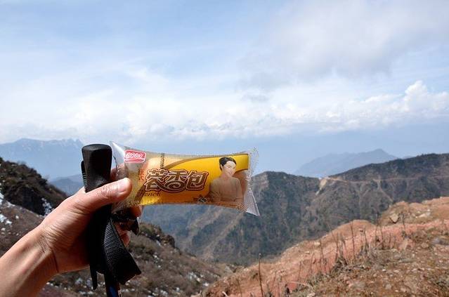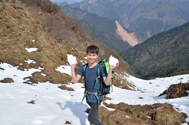 看到雪就莫名的兴奋,抓起两把天然雪糕,留个念吧!ps:白天由于爬山以及有太阳的缘故,不会感觉到多冷,看我穿短袖就知道了
