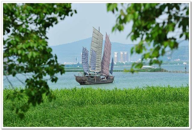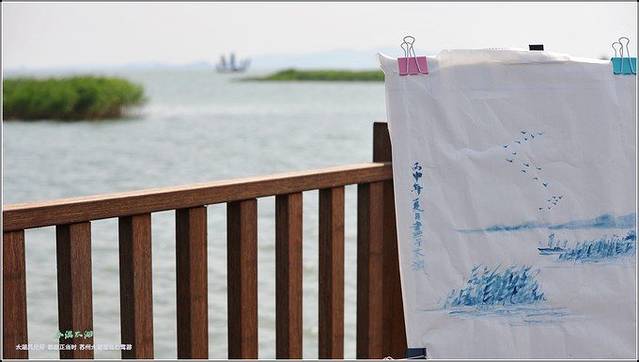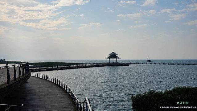 收起画作,我们步行数百米走到了太湖湿地公园的八号码头,乘游船游览太湖。太湖公园,东起太湖景观大道水风车入口处,西至太湖新天地,全长2.5公里,是目前华东地区最大的集生态、休闲、娱乐为一体的免费开放湖滨型湿地公园。由风车堞影、栈桥探幽、悠然双亭、八仙过海、鸥鹭栖归、芦荡迷宫、渔舟唱晚、落日听涛等八大景观串连而成。泛舟湖面,让人一时忘记城市的喧嚣!