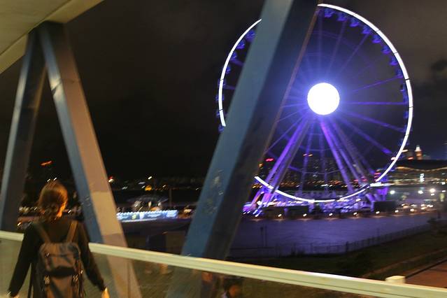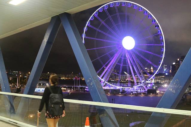 巴士的终点是中环,我们就步行前往天星小轮的中环码头,按照导航,走了大概十来分钟就到了,很方便,一路上还看到了香港摩天轮。
