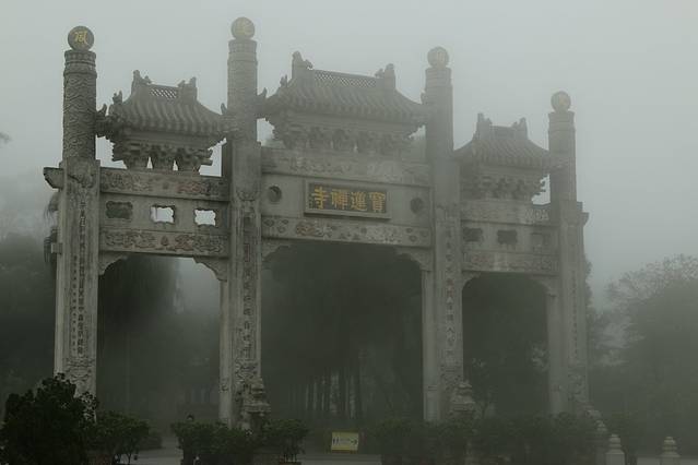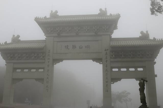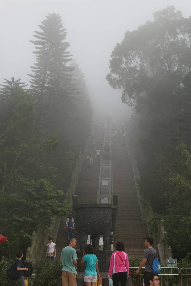 沿着昂坪市集一直往前走就到大屿山天坛大佛的起点宝莲寺了,顺台阶而上就是天坛大佛,由于当时雾气实在太大,登顶又不能看到四周景观且对佛教又不是很感兴趣,故作罢,只是沿途欣赏一下。