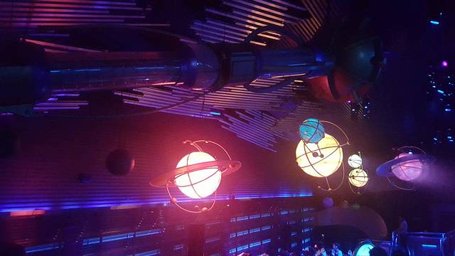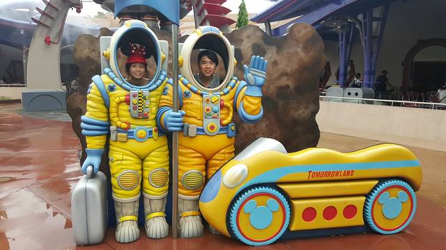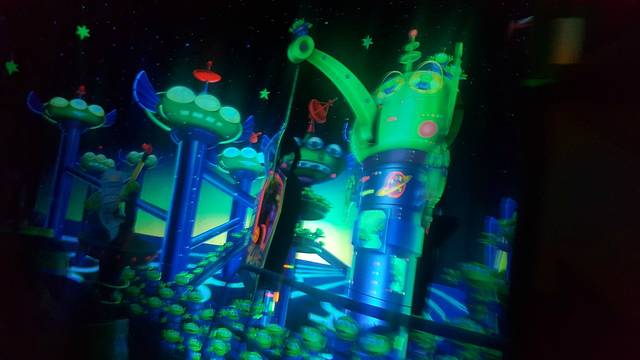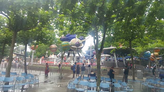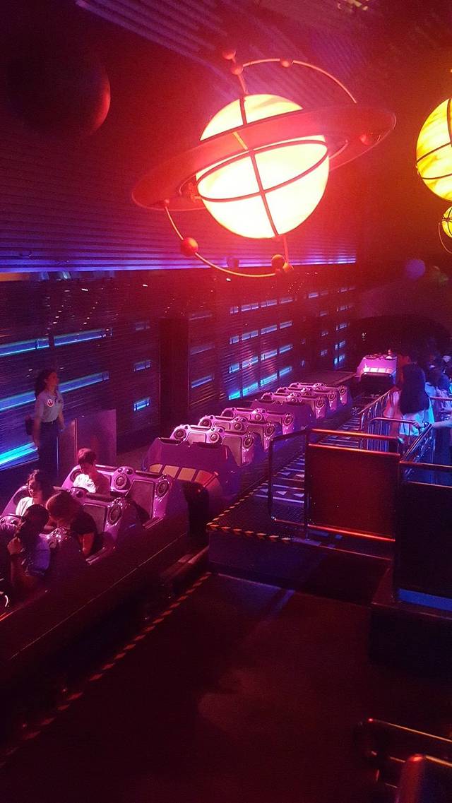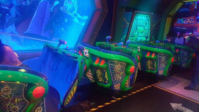 顺着美国小镇大街走,就到了明日世界,这个主题主要游乐项目就是飞越太空山、巴斯光年星际历险,飞越太空山是整个迪士尼的乐园重点项目,所以人非常多,但是这个项目是可以领pass卡的,这个东西是非常有用的,可以有效的节约很多时间,我们先领完飞越太空山的pass卡后,就去巴斯光年派对游玩。