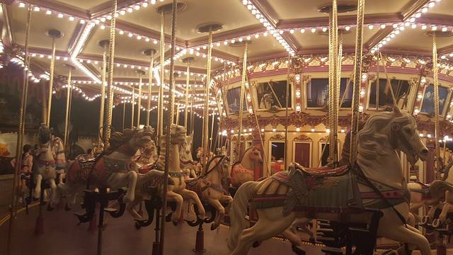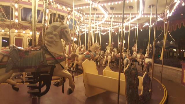 看完夜间巡游,时间距离烟火表演还有一段时间,我们重返幻想世界,去玩女孩子最喜欢的旋转木马,话说旋转木马貌似是每个女孩子都爱玩的项目,还有就是这个项目一定要晚上,亮灯了才更浪漫不是嘛,来我的晓公主,上马!