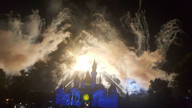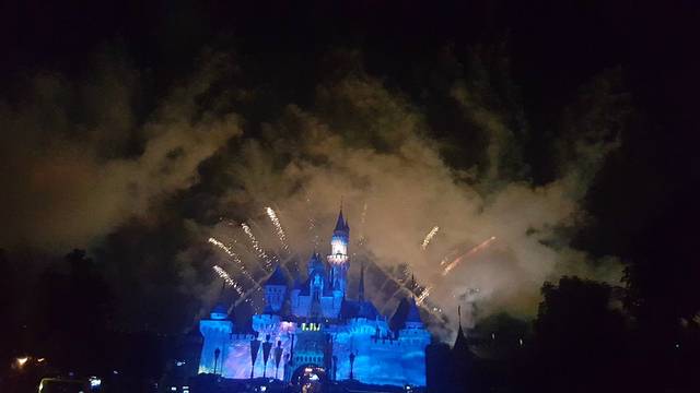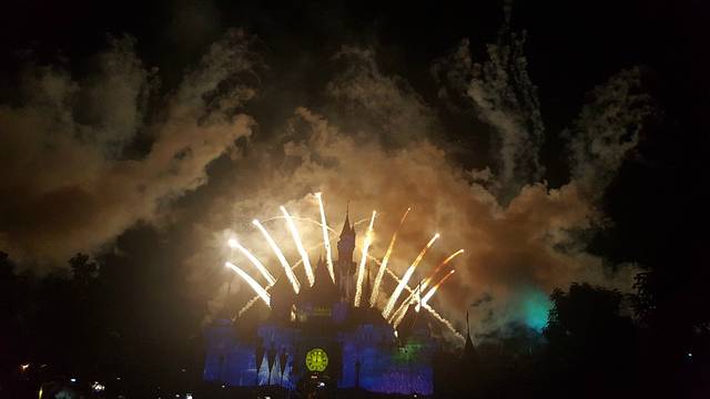今天一天的游玩就快落幕,还有最后一个项目就是在睡公主城堡的烟火表演,这个是每个来迪士尼的游客都要看的表演,我们也找好了最佳位置,等着烟火表演的开始!