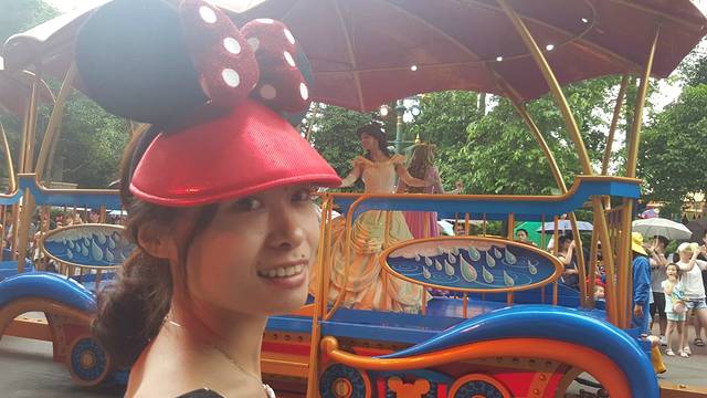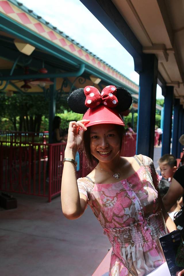 因为迪士尼乐园里有很多娱乐项目,带着单反不太方便,所以今天都是用手机照的,我们的门票是在网上订的两日电子票,到达景区门口就可以直接在自助机上打印门票,非常方便,我们还订了一个晚餐券,这个就要在人工售票处兑换,也是非常方便的,可能因为不是周末又不是假期和暑假,所以人不是很多,几乎不用等待就直接进门,拿票准备进门的时候,一定注意要跟门口检票的说是两日票,第一次来,因为这时要让你录入指纹,之后再进门是需要按指纹才能进门的,因为我们是两日票所以时间比较充裕,可以不用特别赶的去游玩,来到游乐场,当然要按心情去玩了,一进门一定要先给我们的晓晓公主买一个米奇的帽子,来应应景,至此之后几乎所有的照片都有这个帽子的出现。