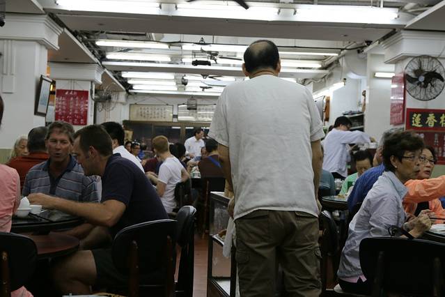 来香港怎么能不尝一尝香港的茶餐厅文化呢,这是香港市井的缩影,所以我们的早点就选在香港的老字号莲香楼。1926年开业的莲香楼为怀旧粤式茶楼,直到现在还保留着30年代香港茶楼的风情,店里桌椅古朴典雅,大厅四面装有中国古文诗句、山水字画。早茶时段也坚持着旧式茶楼的传统——有专人推着小车供客人挑选点心。座上客几乎都是饮茶看报寻常百姓,嘈杂之中透出香港市井文化。莲香楼人非常多,都是拼桌,基本上还是香港本地人偏多一些,所有的工作人员都是上了年纪的中老年人,提供传统服务。要体验过去的港式茶楼文化是个不错的选择。