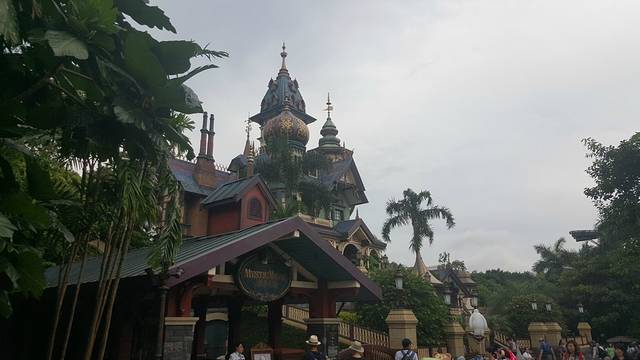 下一个主题是灰熊山谷,灰熊山急速矿车,这个是我认为在迪士尼乐园了最好玩的项目,非常有意思,绝对是坐了一遍还想坐一遍,很有意思,喷泉山谷是在灰熊山谷里的建筑,在玩急速矿车的时候会经过,挺有意思的,急速矿车不能拍照,所以就拍了一下喷泉山谷,但是还是建议大家,一定要去玩急速矿车,特别有意思。