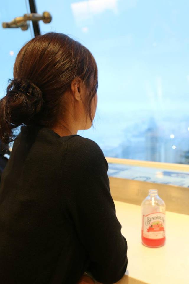下了缆车,一路电梯上山,每层都有很多小店,还有吃饭的地方,我们为了看夜景,特意6点左右到的这里,这时网上很火的龙虾店啊,牛排店啊,人多的已经是不行不行的了,反正我们对这个兴趣也不大就没有排队去吃,就到咖啡店喝点东西,找一个靠窗的位置,喝点东西,静静等待维港夜景的到来。