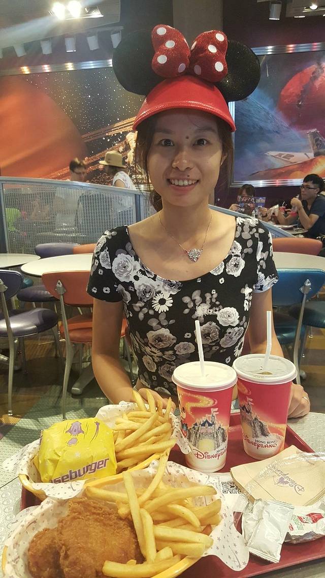 出洲际酒店门口就有地铁的入口,但是香港地铁这错综复杂的线路,即便在地铁入口,走到地铁里还是需要好长的时间,正好香港地铁里就跟商场一样,什么都有,我们俩顺便吃点东西,就坐地铁前往迪士尼,坐地铁去迪士尼还是非常方便,而且迪士尼专线很有特色,值得去体验,因为我们订的两日票,晚上还住在迪士尼好莱坞酒店,所以就先到酒店办理入住,放下行装更加方便的去迪士尼玩,出了地铁,按照指示标非常容易的就找到迪士尼与酒店之间免费的摆渡车,车行6、7分钟就到达酒店,路线是先到迪士尼酒店,再到好莱坞酒店。因为好莱坞酒店都是统一下午三点入住,所以在前台办好入住手续寄存好行李就出发前往迪士尼景区。