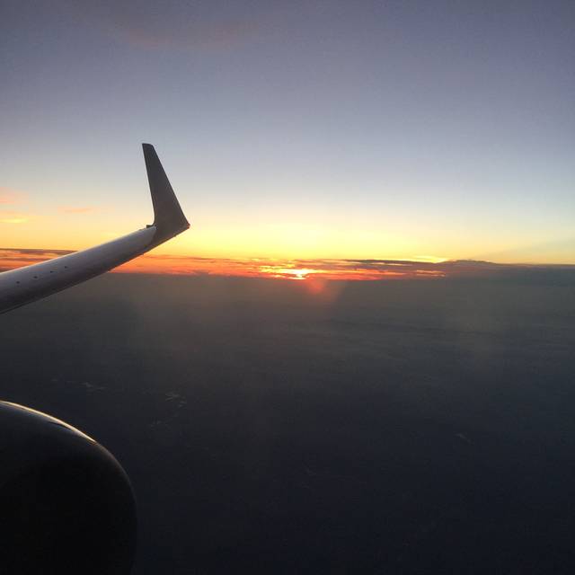 在回来的飞机上恰逢是日落,拍出来的照片还是蛮有感觉的~