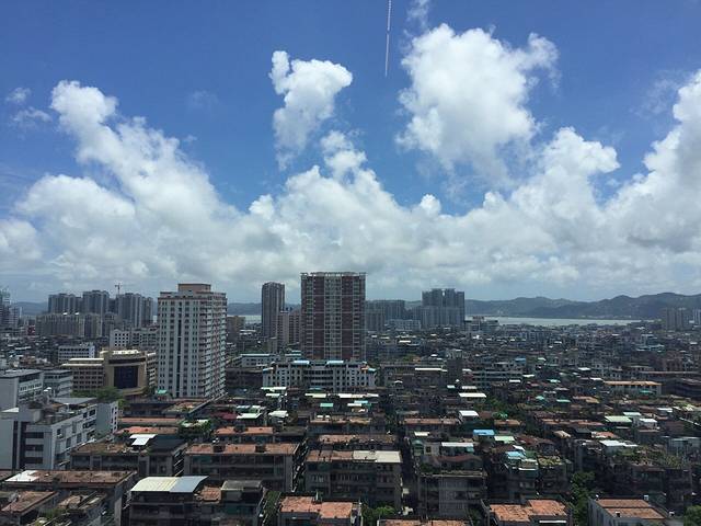 游完泳,准备退房,再看一眼汕头的蓝天白云和远处的海……