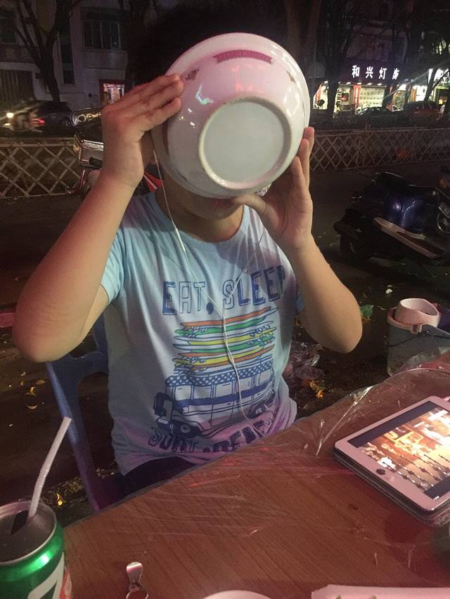 鱼粥被少爷吃了精光,猜猜好吃不?其实我个人觉得一般。倒是没吃完的虾生和咸蟹,让老板加工成粥,滋味一流。