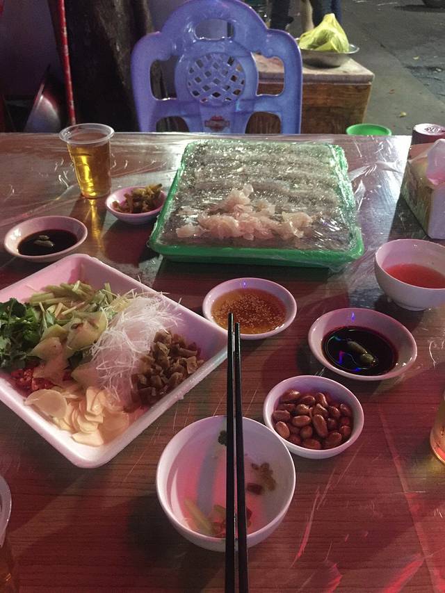 鱼生绝对惊艳了我的味蕾,老板娘热情教我吃鱼生的正确方法,各中滋味无法言传,只有吃过的人才知道。
