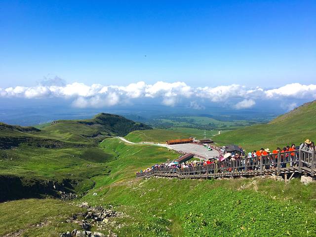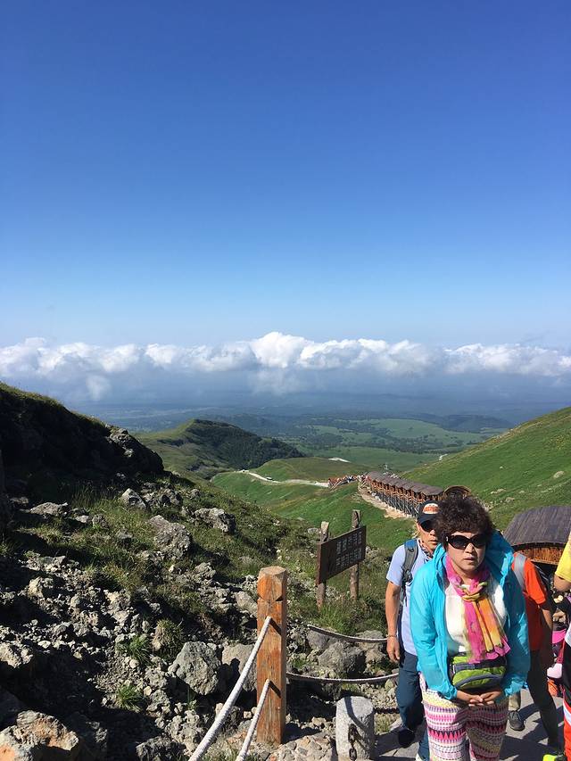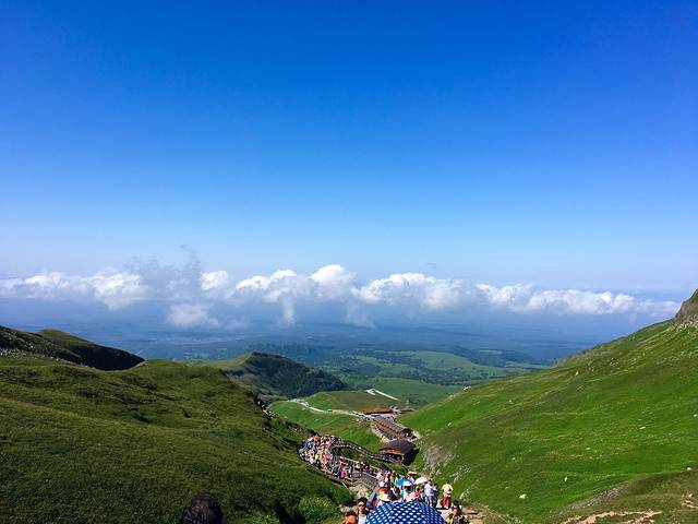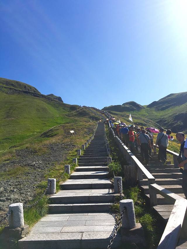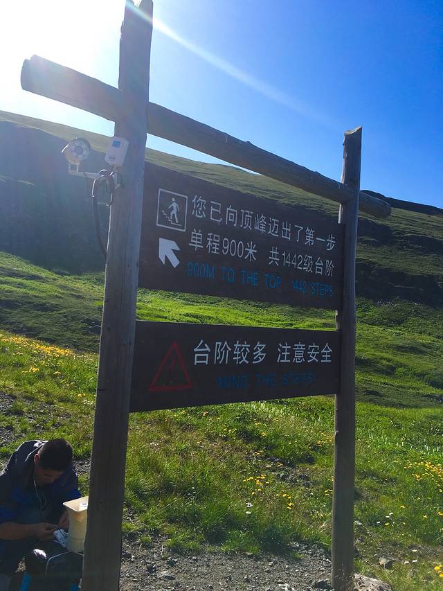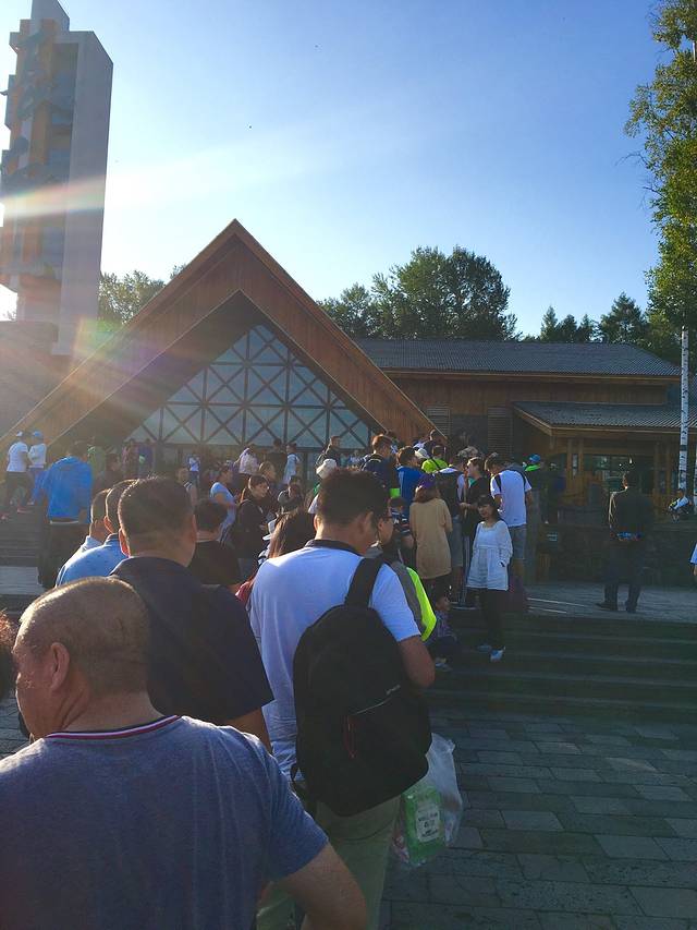 环保车需要行驶45分钟到达天池停车场,下车后还需要步行1442级台阶才能到达天池观景台。有滑杆可以乘坐,单程400往返700,贵啊。虽然一千多级台阶不算高,但是因为海拔高,有些人走起来还是很吃力的。我没有高反,所以走的很轻松。