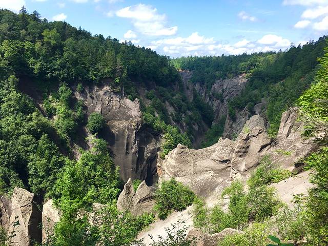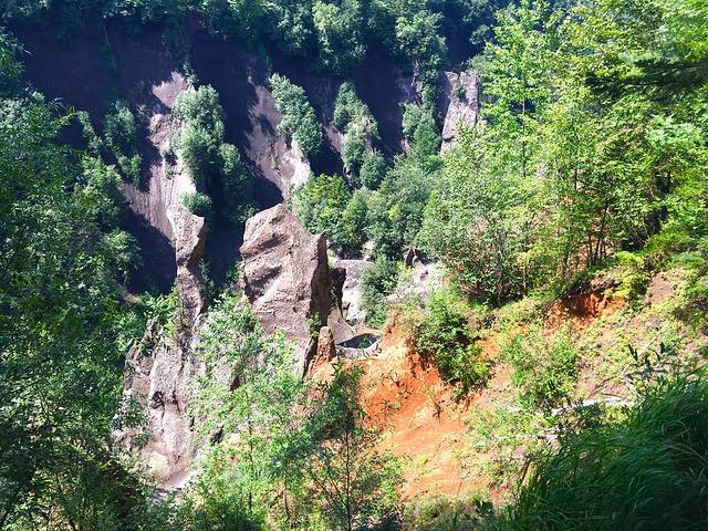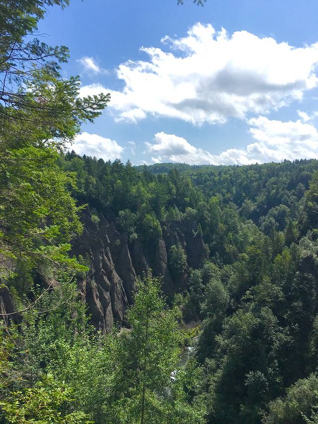 景区包含在门票之内了,可以乘坐环保车前往,景点一般。其实大峡谷还是很壮观的,只是没有一个很好的观景平台,大好的美景浪费了。不过里面的空气很好,负离子含量很高。要说里面比较值得看的就是位于出口处的松桦恋,松树和桦树的根长到了一起,很特别。