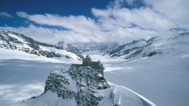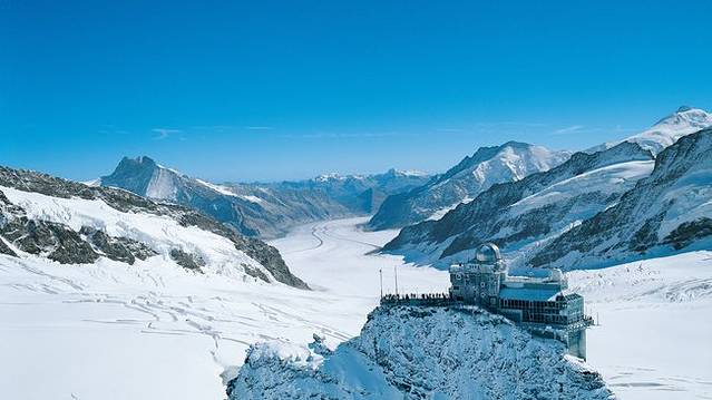 抵达欧洲最高的火车站,有一部电梯可以直达Sphinx Terrasse斯芬克斯观景平台,那里有著名的360的回旋瞭望台,由此可以观赏到阿尔卑斯山惊心动魄的全景。天气好的时候,可以瞭望到法国境内的孚日山脉和德国境内的黑森林。索道缆车funicular站旁边有个小型动物园,感兴趣的话,可以参观一下,有羚羊和山羊等。