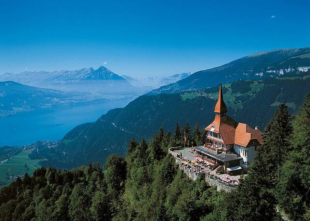 因特拉肯观景台之一。乘坐具有100多年历史的小火车抵达山顶,这里可以瞭望到艾格峰、僧侣峰以及少女峰,布里恩茨湖、图恩湖的美景也尽收眼底。山间的阿尔卑斯植物园有着600多种不同植物种类。遍布着三分之二瑞士境内的高山植物。