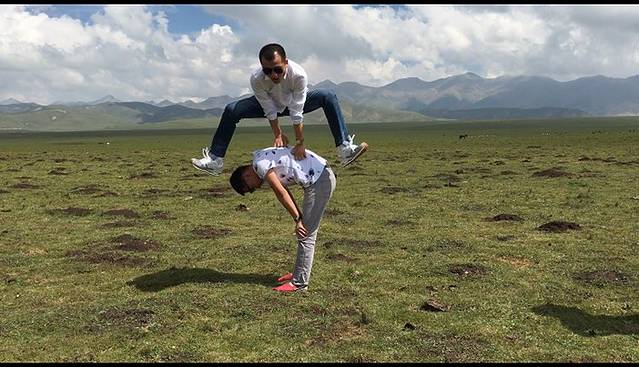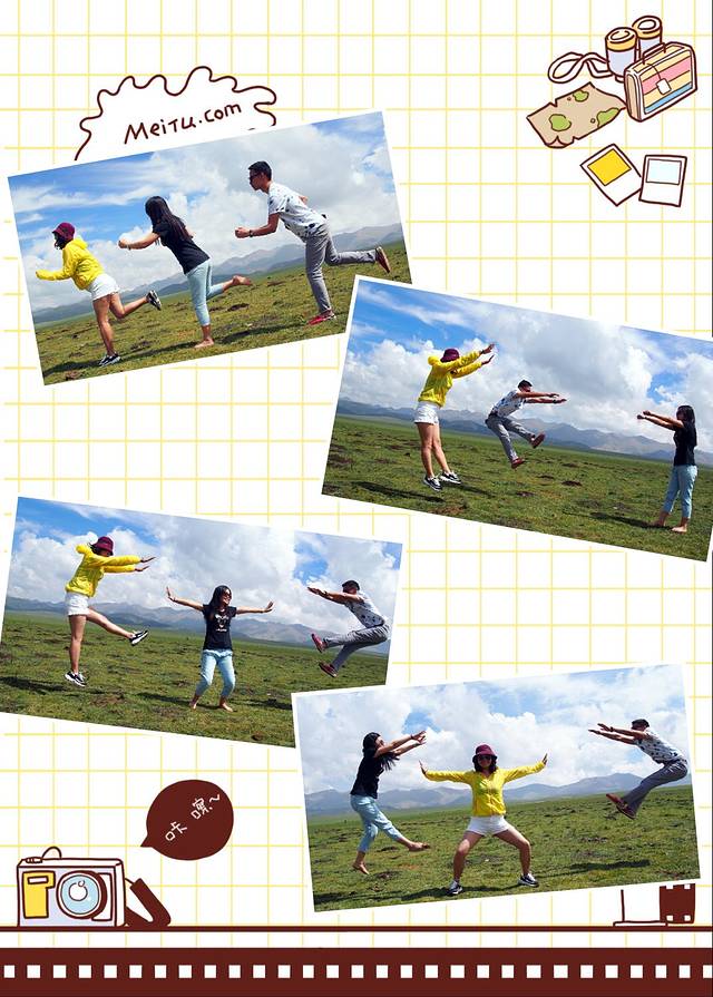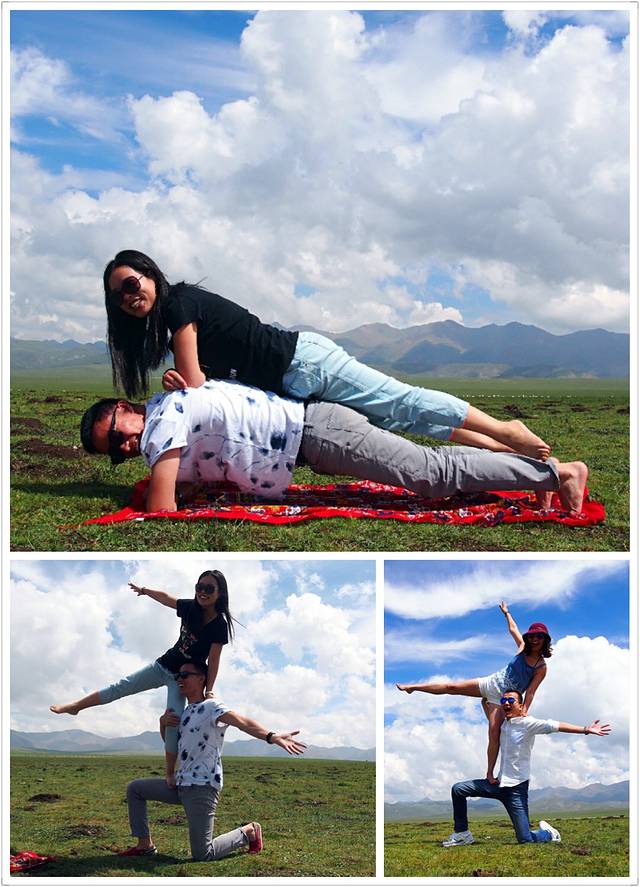 我兴奋的提出了拍跳马照~却尴尬的发现我根本不会跳~每次都是一屁股骑在了张先生的背上~被三人一顿嘲笑~最后都有缺氧の感觉了!!