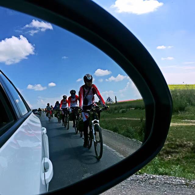途中遇到的大学骑行队~拍照时大家都会和我们招手,我们也为他们加油~好有爱の场面~