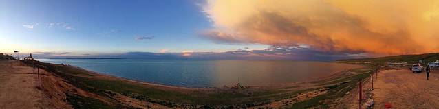 这是环湖西路离湖水最近的地方了,这片云让湖水清晰的分成了两种颜色~我们一直在惊叹~肿么可以这么美~