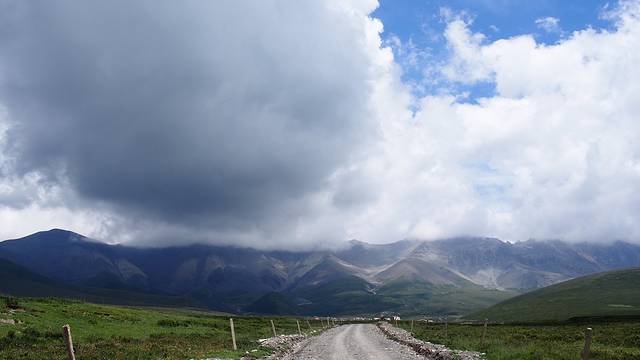 我们在山下又遇到收买路钱的~20大洋!!也就当做门票了~一路山倒没什么特别,就是忽远忽近的雪峰景致相当不同~到了山腰发现景区属于在建,路就修到山腰~如果要爬上雪山可要费一番力气!!我们光是在山腰就被冻得不行~而且乌云密布,感觉要把整个山吞掉一样~我们趁雨还未下,赶紧下山了~