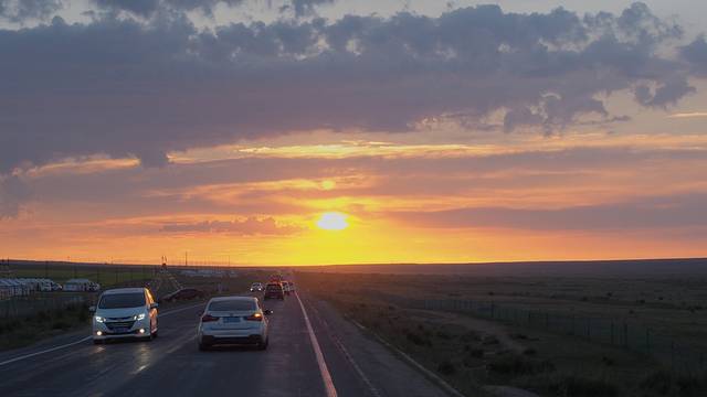 虽然一路在堵车,但是我们也邂逅了美丽的夕阳~当路途开始通畅起来的时候,我们发觉这条公路太美了~有图,有真相!!