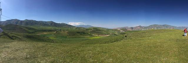 这是我们在这拍了个全景图,因为对于油菜花已经不陌生,这样高低起伏且视野宽阔的草甸更让我们雀跃~
