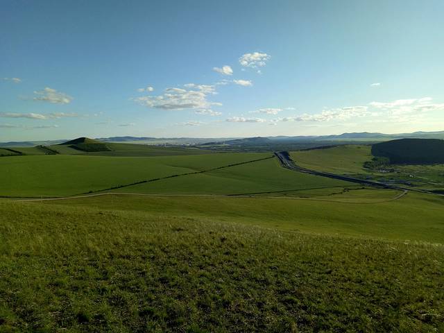 草原上的公路,行走在草原上,听着朴树的《平凡之路》很有感觉的旅行