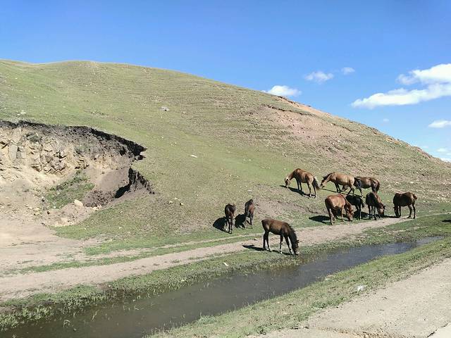 一路都是风景,真真切切感受了。在草原我唯一觉得不适应的是嘴唇,这里风很大,嘴唇被吹得很干。天气也炎热起来,一路颠簸之后。我们来到这个神圣水阿达盖,亲自尝了一口,很凉,很甜。湿润嘴唇,把手脚洗了一边,一切的感觉是那样好。开始爱上这个地方了。