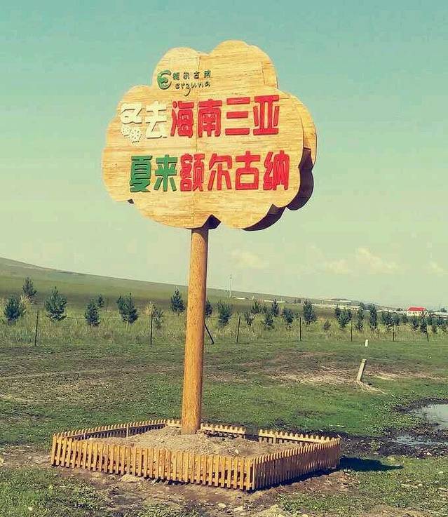 回家后才想起我们在游玩中,看到一块写着“冬去海南三亚,夏来额尔古纳”,没拍到,跟王帅哥一说,他很快拍好就发给我。