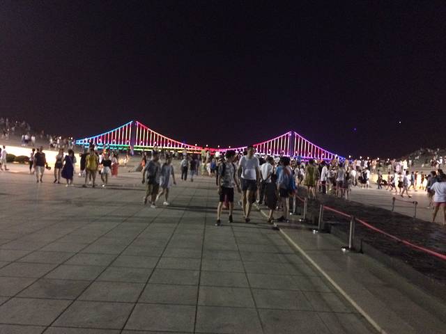 晚上的星海广场热闹非凡,我们是乘坐公交去的,走了好远的路,建议打车去