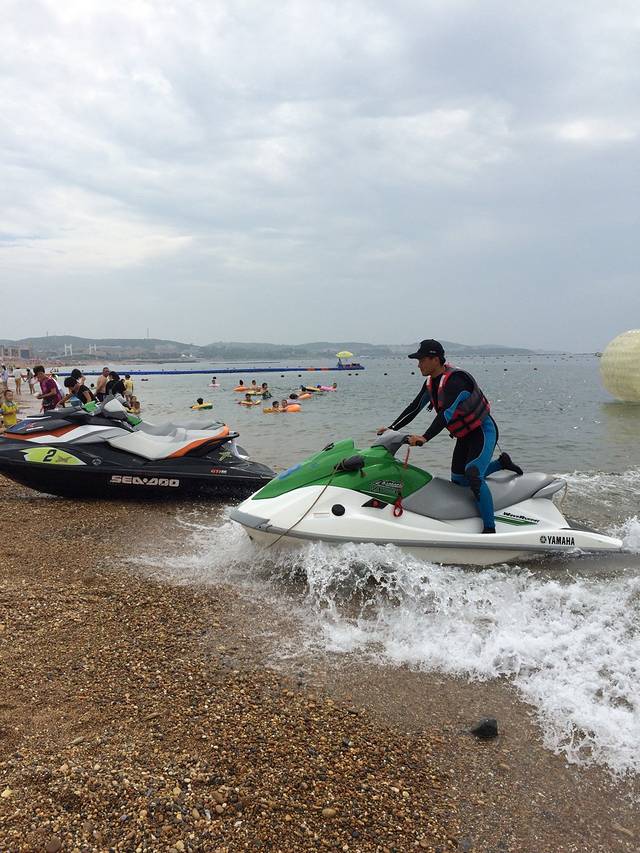 海滨浴场人很多,我们也加入了下饺子的队伍
