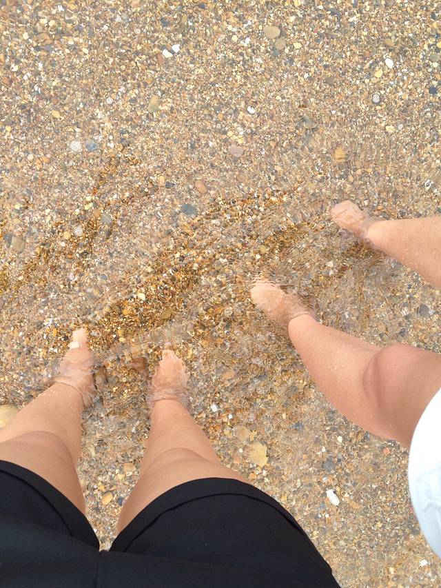 一大早就来到海滨浴场,八月初水很凉,但是很快就适应了。海水清澈见底,玩的不愿离开。