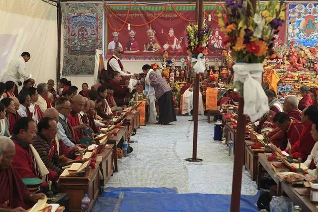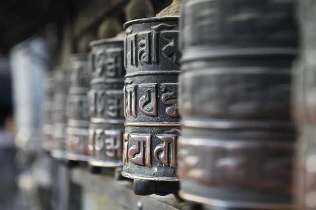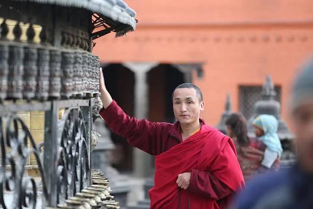 大佛塔四周的祈祷轮前,络绎不绝的朝圣者一边念着经文一边转动朝圣轮,虔诚地祈祷着神灵的保佑。