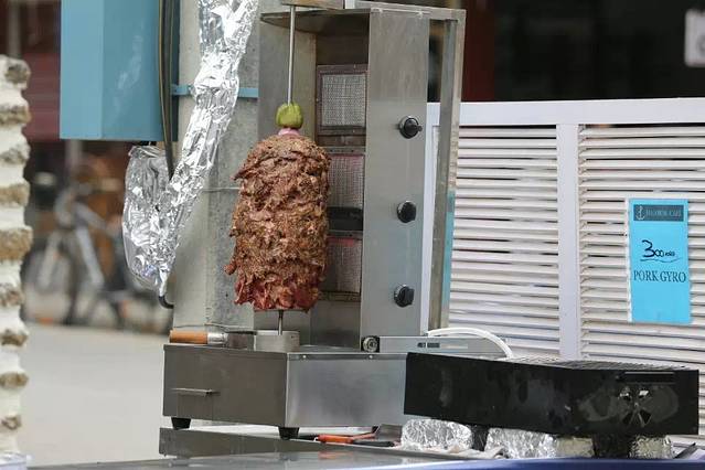 油汪汪、滋滋作响的烤肉。