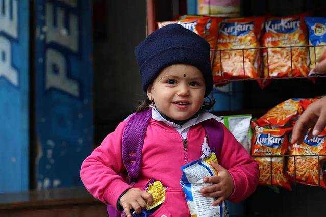 博卡拉费瓦湖畔的小姑娘,稚气地问候我们“NAMASTER”(尼泊尔语“你好”)