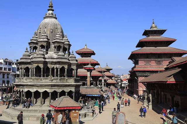 站在入口能隐约看到远方雪山的帕坦杜巴广场是加德满都谷地三个杜巴广场中最小的一个,可能是地处商业区的缘故,广场特别热闹。老人、孩子、妇女晒着太阳,干着自己的事,丝毫不受游客的干扰,好像这里的一切都是他们家客厅,他们是这里理所当然的主人。