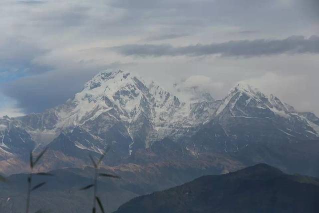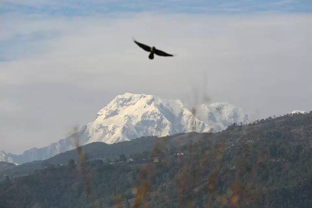 白雪皑皑的安娜普纳尔雪峰像娇羞的新娘笼上曼妙的轻纱,美艳动人。